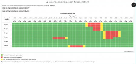 У зв'язку зі складною ситуацією в енергосистемі України, в Полтавській області 6 листопада отримана команда НЕК «Укренерго» продовжити дію 0,5 черги ГПВ до 14.00. Про це повідомила «Полтаваобленерго».