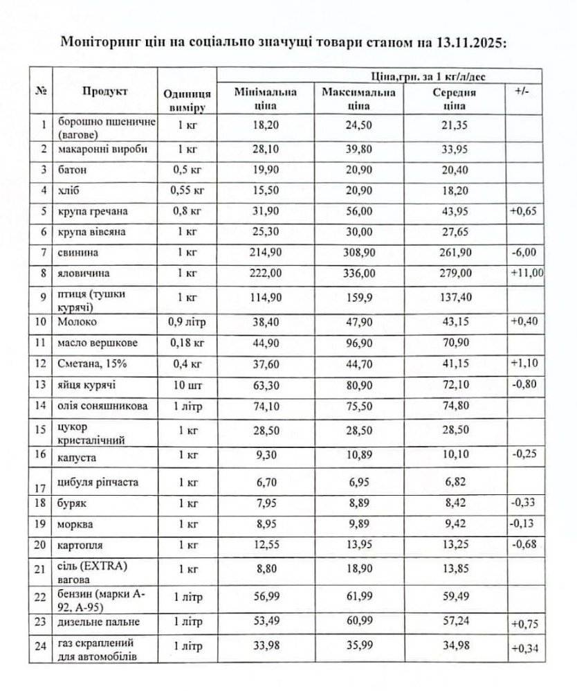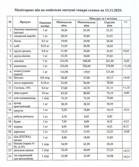 Кременчуцьке районне управління Держпродспоживслужби провело моніторинг цін на соціально значущі товари у торгівельних закладах району станом на 13 листопада. З цією інформацією наше видання ознайомила Кременчуцька районна військова адміністрація.