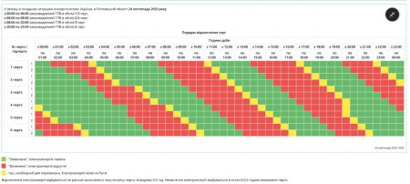 ПАТ «Полтаваобленерго» повідомляє, що у зв'язку зі складною ситуацією в енергосистемі України, в Полтавській області у понеділок, 24 листопада, буде застосовано графік погодинних відключень: