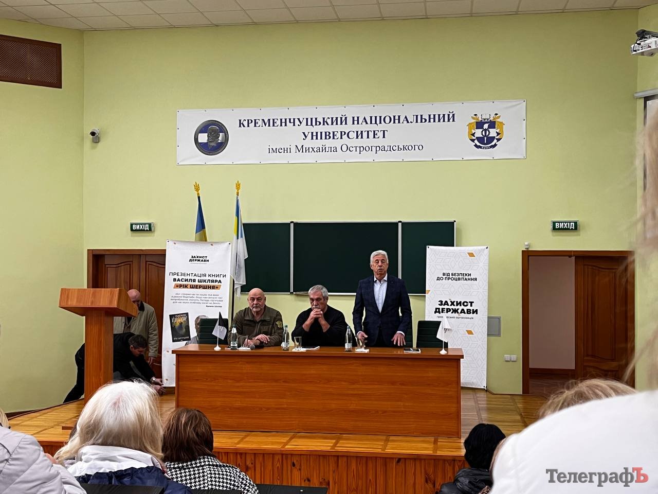 У неділю 23 листопада одна з лекційних зал Кременчуцького національного університету імені Михайла Остроградського повнилась людьми, які прийшли зустріч з Василем Шклярем — письменником, чиї романи давно стали вагомою частиною сучасної української літератури, людиною, яку називають «батьком українського бестселера» — з нагоди презентації його книги «Рік Шершня». Захід організувала громадська організація «Захист Держави».