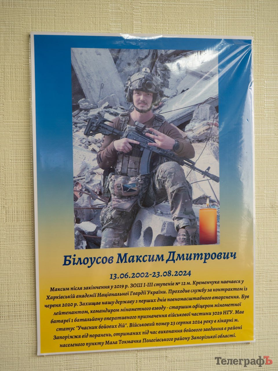 Окремо пані Любов розповідає про загиблого воїна, випускника гімназії, свого учня Максима Білоусова. Його зошити, передані бабусею-волонтеркою, стали одним із найзворушливіших експонатів музею.