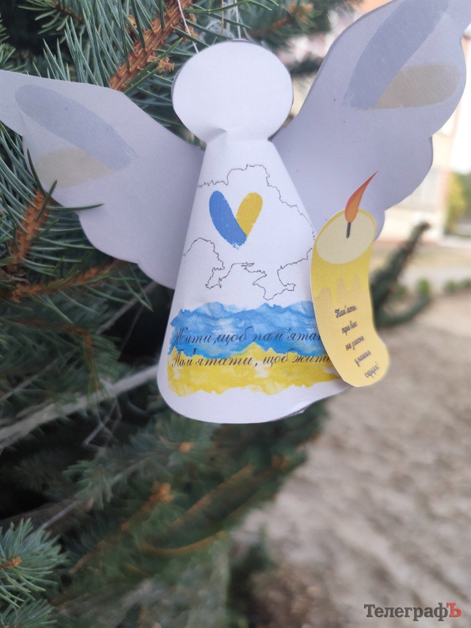 Після відкриття алеї діти з місцевого садочка принесли власноруч зроблених паперових ангелів і прикрасили ними ялинки.