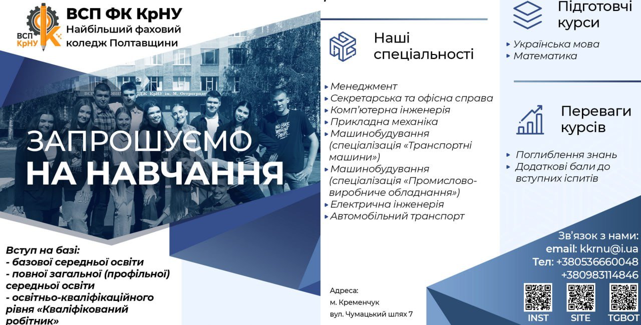 ВСП Фаховий коледж КрНУ ім. М. Остроградського — ваш надійний старт до успішної кар'єри!