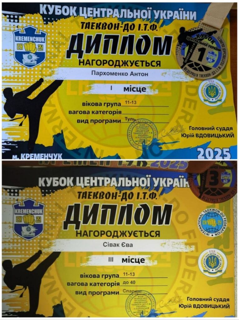 Кременчуцькі спортсмени завоювали призові місця під час Кубок Центральної України з таеквон-до І.Т.Ф. Про це повідомили педагоги Кременчуцького спортивного ліцею ім. Піддубного, де таеквондисти навчаються.