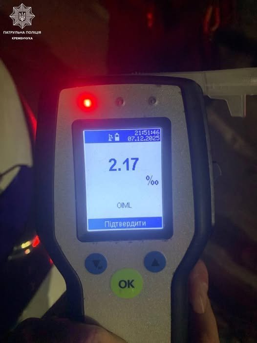 До того ж у чоловіка були помітні ознаки алкогольного сп’яніння. Перевірка за допомогою приладу «Драгер» показала результат 2,17 проміле, що майже в 11 разів більше за допустиму норму!