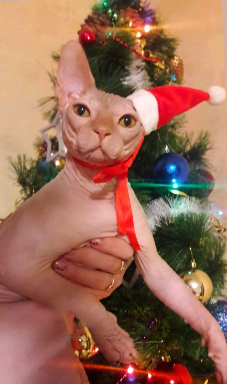 П’ятий учасник фотоконкурсу «Святкові хвостики» — кіт Муня, 7 років, канадський сфінкс.