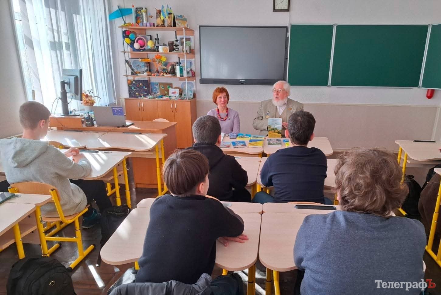 Любов Карпова, завідувачка бібліотеки Кременчуцької гімназії № 1, познайомила школярів із творчістю гостя, його численними виданнями, які для багатьох кременчужан і гостей міста відкривають незнайомі сторінки історії Кременчука, Кременчуччини, Полтавщини.