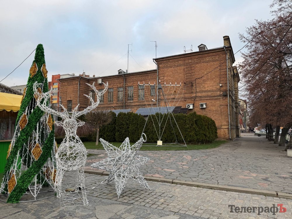У Кременчуці встановили ханукію — традиційний єврейський свічник, який щороку з’являється у місті під час святкування Хануки. Конструкцію розмістили поруч із новорічними декораціями на площі Перемоги.