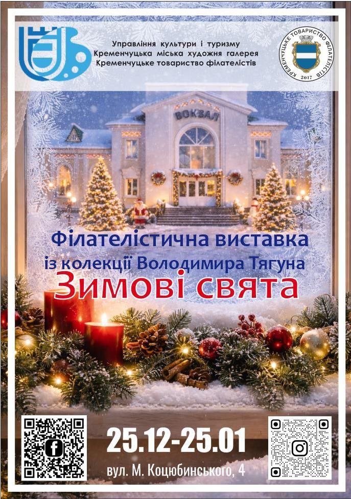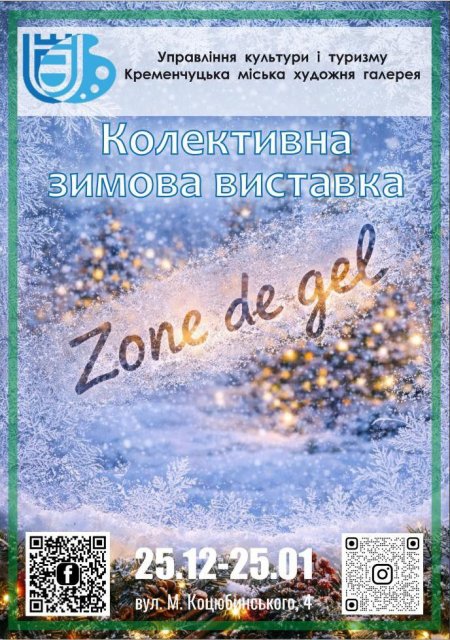 У галереї відкривається зимова колективна виставка «Zone de gel» («зона морозу / зона замерзання») та філателістична виставка із колекції Володимира Тягуна «Зимові свята» пропонує занурення в атмосферу зимових свят через призму поштової історії та романтики зимових подорожей залізницею. Марки й поштові матеріали розповідають про час, коли листи були носіями очікування, а подорож — частиною дива.