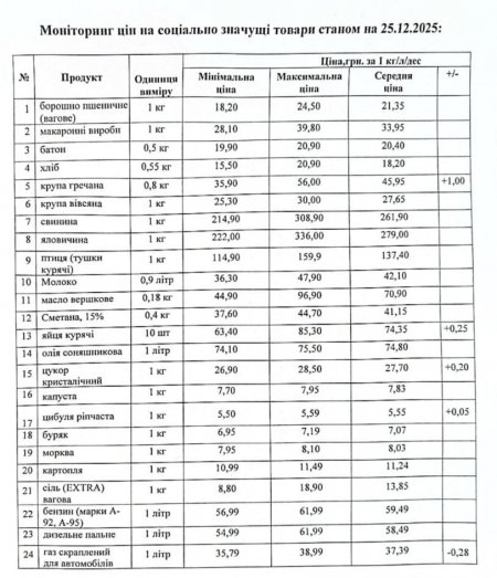 Кременчуцьке районне управління Держпродспоживслужби провело моніторинг цін на соціально значущі товари у торгівельних закладах району станом на 25 грудня. З цією інформацією наше видання ознайомила Кременчуцька районна військова адміністрація.
