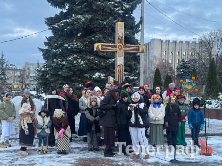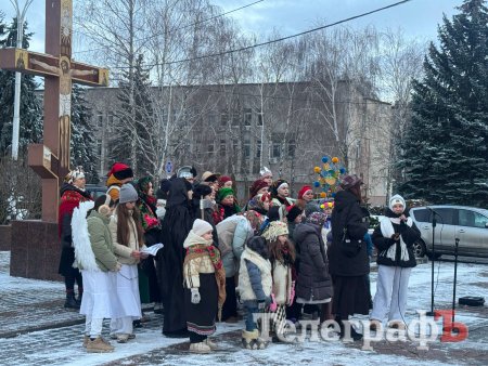 У Кременчуці на площі Перемоги діти та підлітки влаштували різдвяний вертеп для містян. Виступ відбувся просто неба та зібрав перехожих, які зупинялися подивитися святкову виставу.