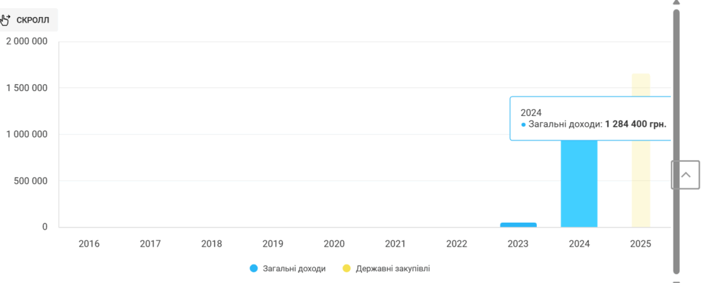 При цьому, за даними ClarityProject, до цього у компанії не було зафіксовано жодних активів. А бюджетні підряди з 2023 року значно перевищують інші доходи компанії.