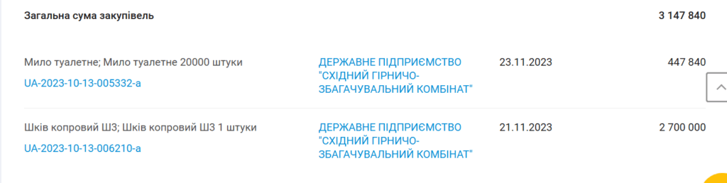 - ТОВ «Мераксес Інт». Компанія отримала бюджетне замовлення понад 3 млн грн за 2023 рік за постачання обладнання та мила для держкомпанії.