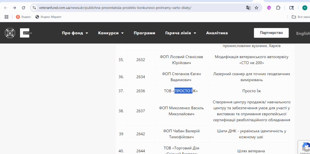 Компанія виграла у конкурсі проектів від «Українського ветеранського фонду», який фінансує управління Міністерства у справах ветеранів. Вона стала одним із переможців конкурсу проектів «Варто Діяти». Компанія, перекуплена від масового засновника, займеться впровадженням проекту, спрямованого на підтримку ветеранів війни за бюджетні кошти.