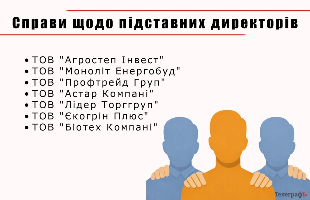 Згідно із документами, організатор знаходив людей у скрутному матеріальному становищі та пропонував їм 4000 гривень, щоб перереєструвати на них компанію. За кожного такого «директора» він отримував 1000 гривень комісії. Далі ці компанії використовувались для ухилення від сплати податків та переведення грошей у готівку.