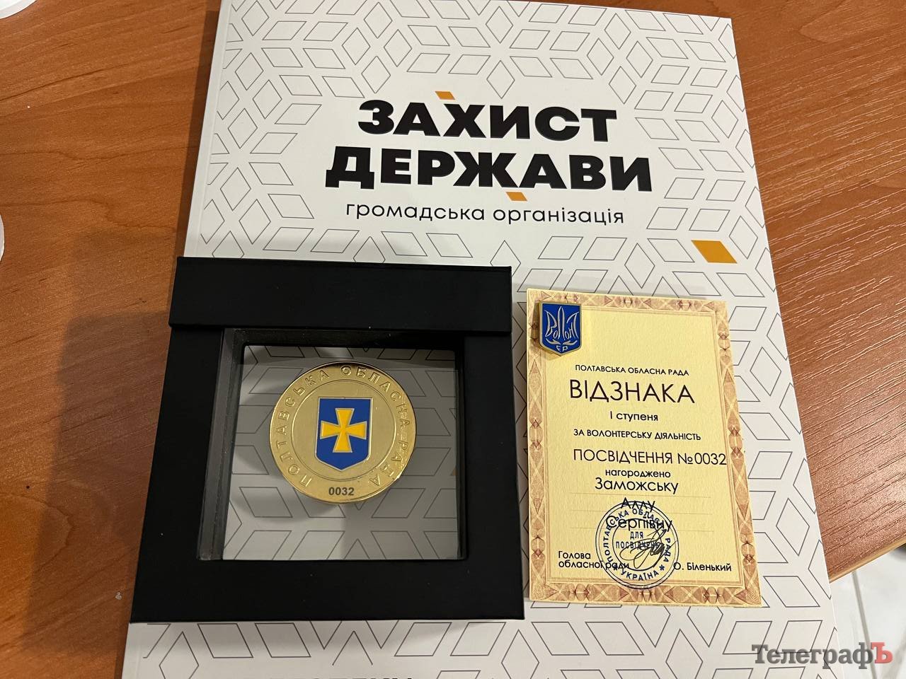 Сьогодні, 6 січня, в громадській організації «Захист держави» очільник Кременчуцького підрозділу Микола Капінос вручив відзнаку Полтавської обласної ради за волонтерську діяльність І ступеня кременчуцькій волонтерці, організаторці та керівниці громадської організації «Батьки Кременчука — Полтавщина» Аллі Заможській.