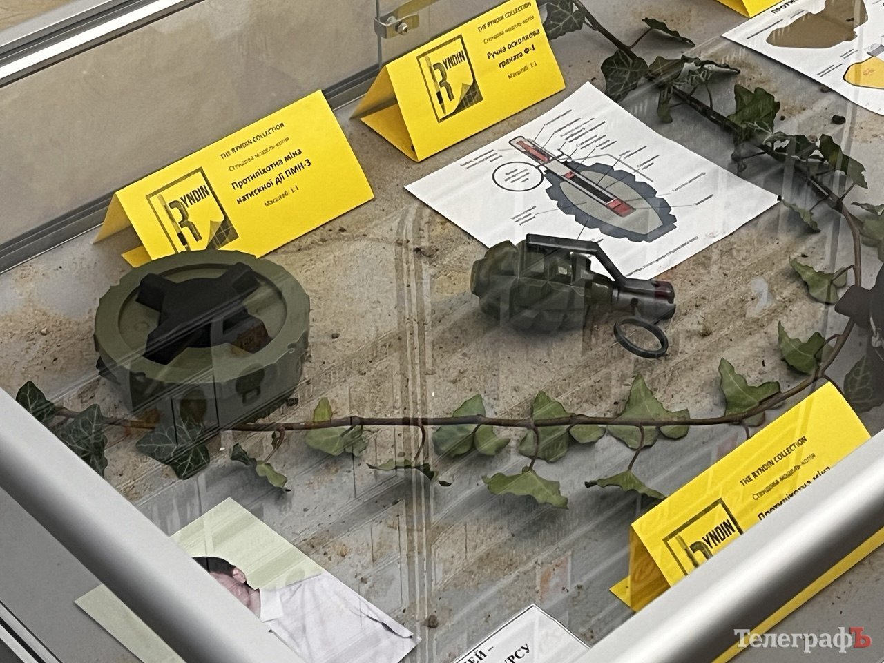 Моделі імітують протипіхотні міни «ПФМ-1» (пелюстка), «ПМН» та «ПМН-3» (чорний павук). Їх Андрій створював на 3D-принтері та формував із пластику за допомогою силіконовий форм. Спочатку експозиція була створена в рамках наукового дослідження Всеукраїнського конкурсу-захисту науково-дослідницьких робіт учнів-членів МАН України.