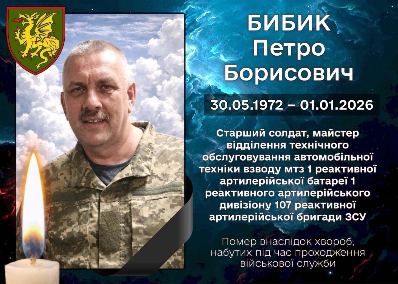 1 січня 2026 року відійшов у вічність Петро Бибик — старший солдат, майстер відділення технічного обслуговування автомобільної техніки 107 реактивної артилерійської Кременчуцької бригади Збройних Сил України. Прощання відбулося 5 січня у Хоролі на площі імені Т.Г. Шевченка.