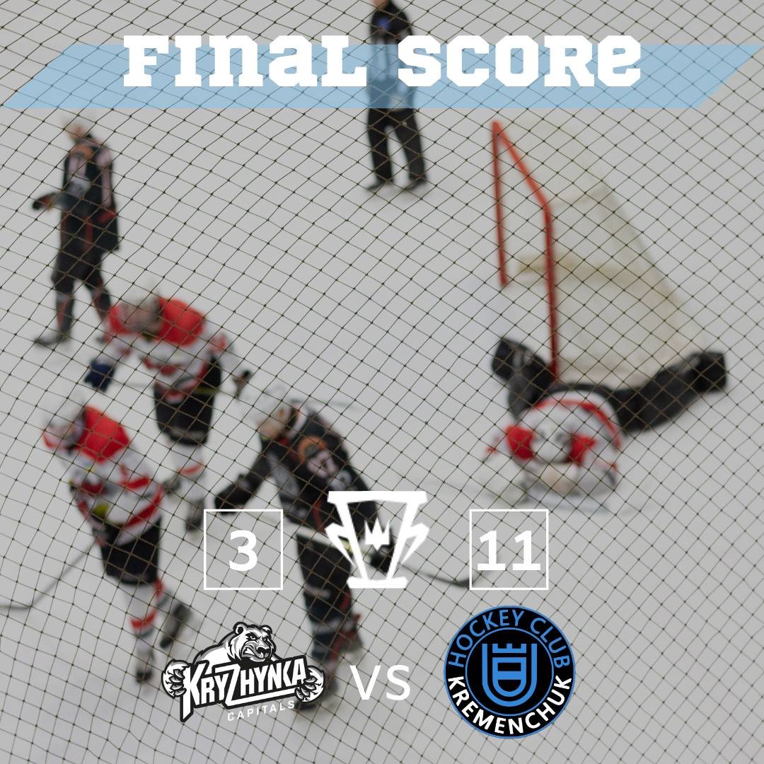 За підсумками зустрічі ХК «Кременчук» здобув упевнену перемогу над «Крижинка Кепіталз» рахунком 11:3.