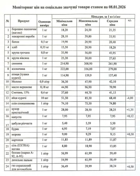 Кременчуцьке районне управління Держпродспоживслужби провело моніторинг цін на соціально значущі товари у торгівельних закладах району станом на 8 січня. З цією інформацією наше видання ознайомила Кременчуцька районна військова адміністрація.