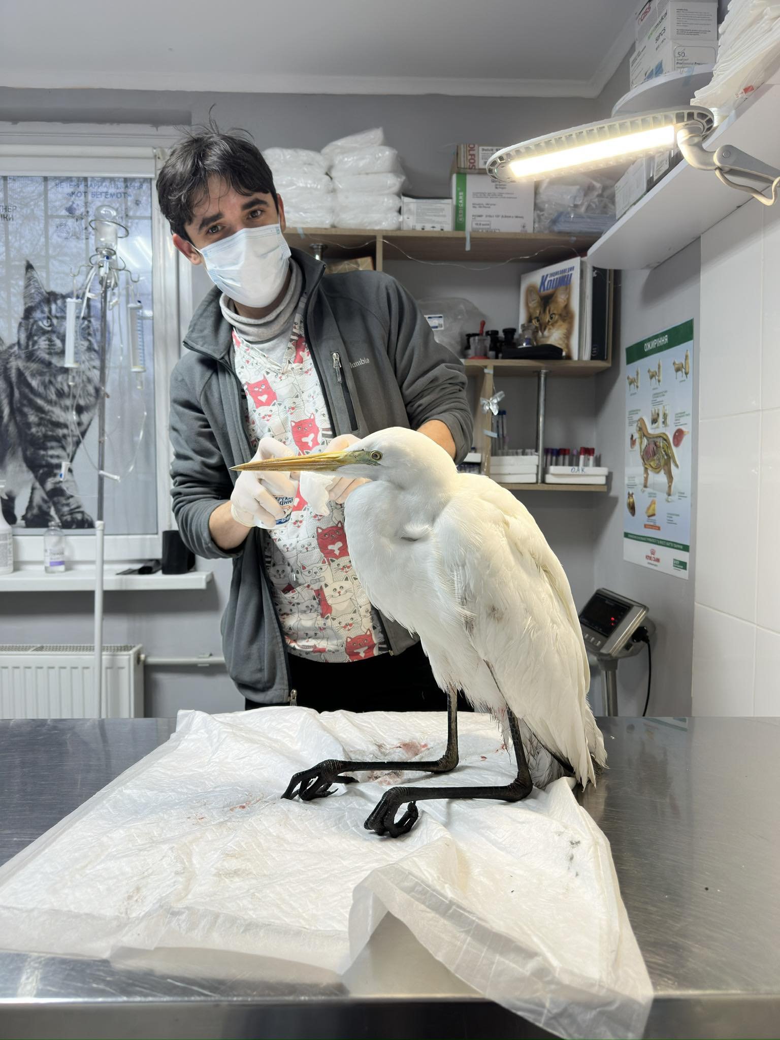 Після того, як чепура відігрілася, їй запропонували їжу — птах одразу з апетитом з’їв рибу, що ветеринари назвали хорошим знаком.