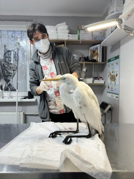 За його словами, чепуру виявили на одному з підприємств міста, після чого на місце виїхали спеціалісти. Під час огляду з’ясувалося, що птах має незначні ушкодження кінцівок і тулуба, але найбільшу загрозу становило критичне виснаження — вага птаха на момент доправлення становила 900 грамів.