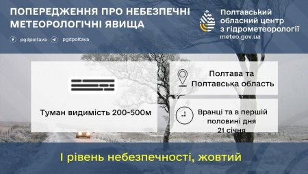 Сьогодні, 21 січня, у Кременчуці та на Полтавщині синоптики прогнозують можливий туман. Про це повідомили у пресслужбі Полтавського обласного гідрометцентру.