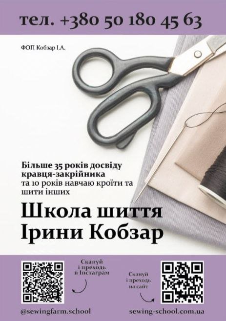 Ірина Анатоліївна Кобзар — ательєр, засновниця Офлайн та Онлайн Школи Крою та Шиття SewingFarm.School.