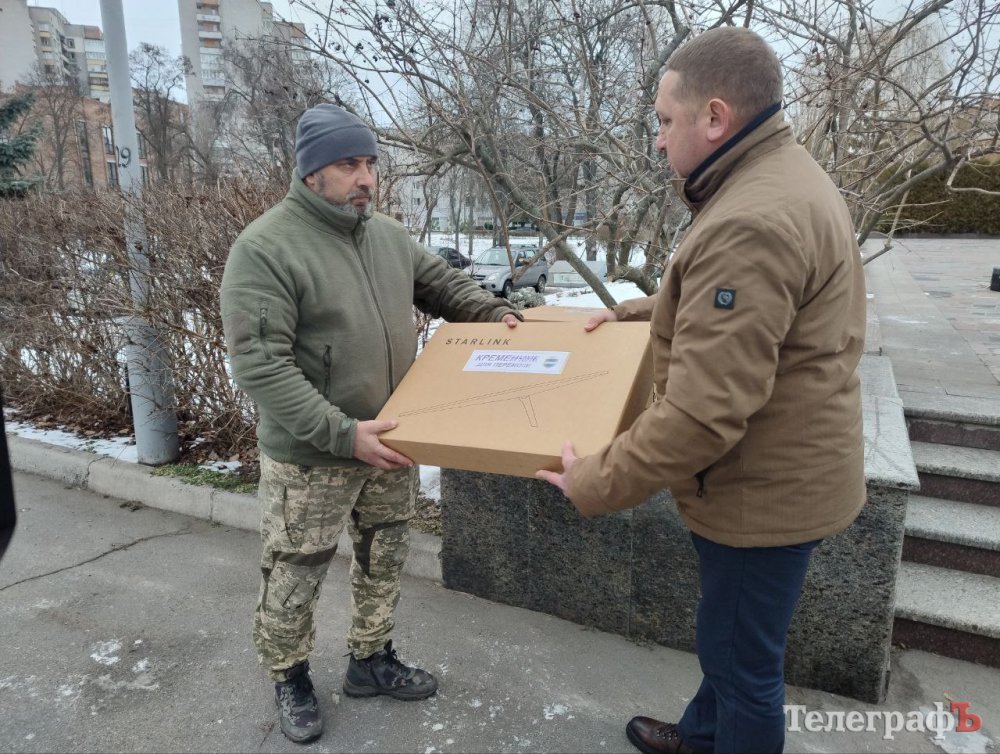 Після завершення офіційної частини міський голова Кременчука Віталій Малецький передав п’ять комплектів супутникового зв’язку Starlink військовослужбовцям 115-ї окремої механізованої бригади, яка пов’язана з Полтавщиною.