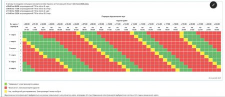 ПАТ «Полтаваобленерго» повідомило, що у зв'язку зі складною ситуацією в енергосистемі України, в Полтавській області у суботу, 24 січня, буде застосовано графік погодинних відключень (ГПВ) електроенергії: