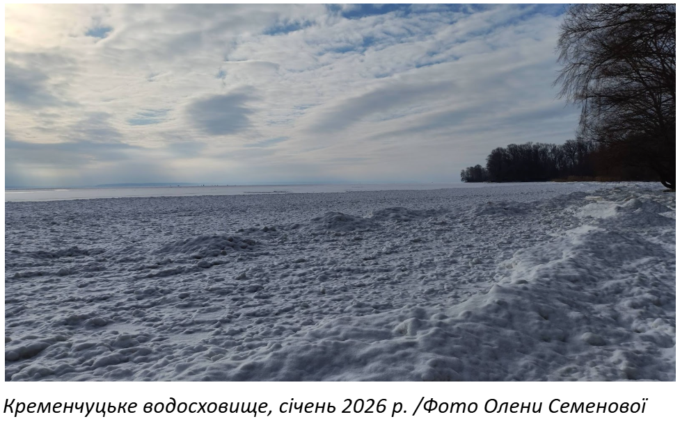 На початку січня 2026 року голова Градизької громади Мирослав Носа опублікував фото берега Кременчуцького водосховища. На знімку видно крижані нашарування, що піднялися над урізом й обрамлюють прибережну смугу. У підписі він зазначив, що спостерігає таке вперше, і пов’язав це з високим рівнем води у водосховищі взимку.
