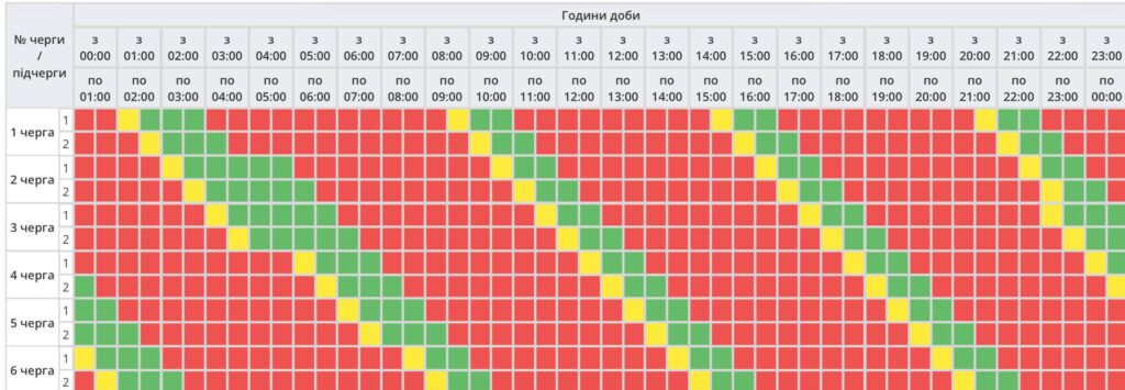 Зауважимо, що упродовж доби графік погодинних знеструмлень може змінюватися.