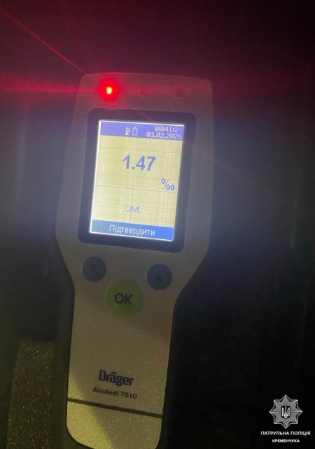 Спілкуючись з водієм, патрульні помітили в нього ознаки алкогольного спʼяніння. Керманич погодився пройти огляд за допомогою приладу Драгер — резутьтат показав 1,47 проміле, що у понад 7 разів перевищує допустиму межу.