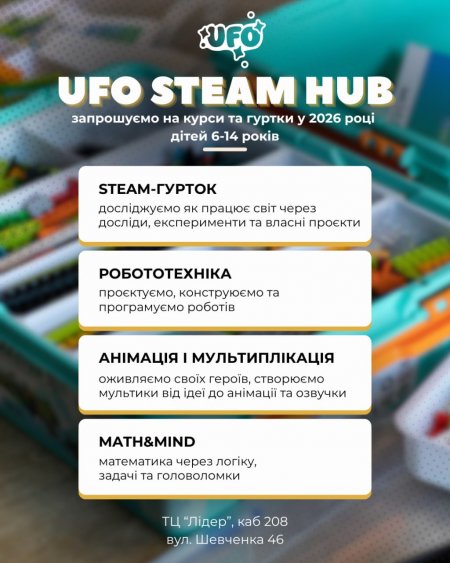 UFO STEAM HUB — освіта, що запалює цікавість і формує мислення майбутнього.