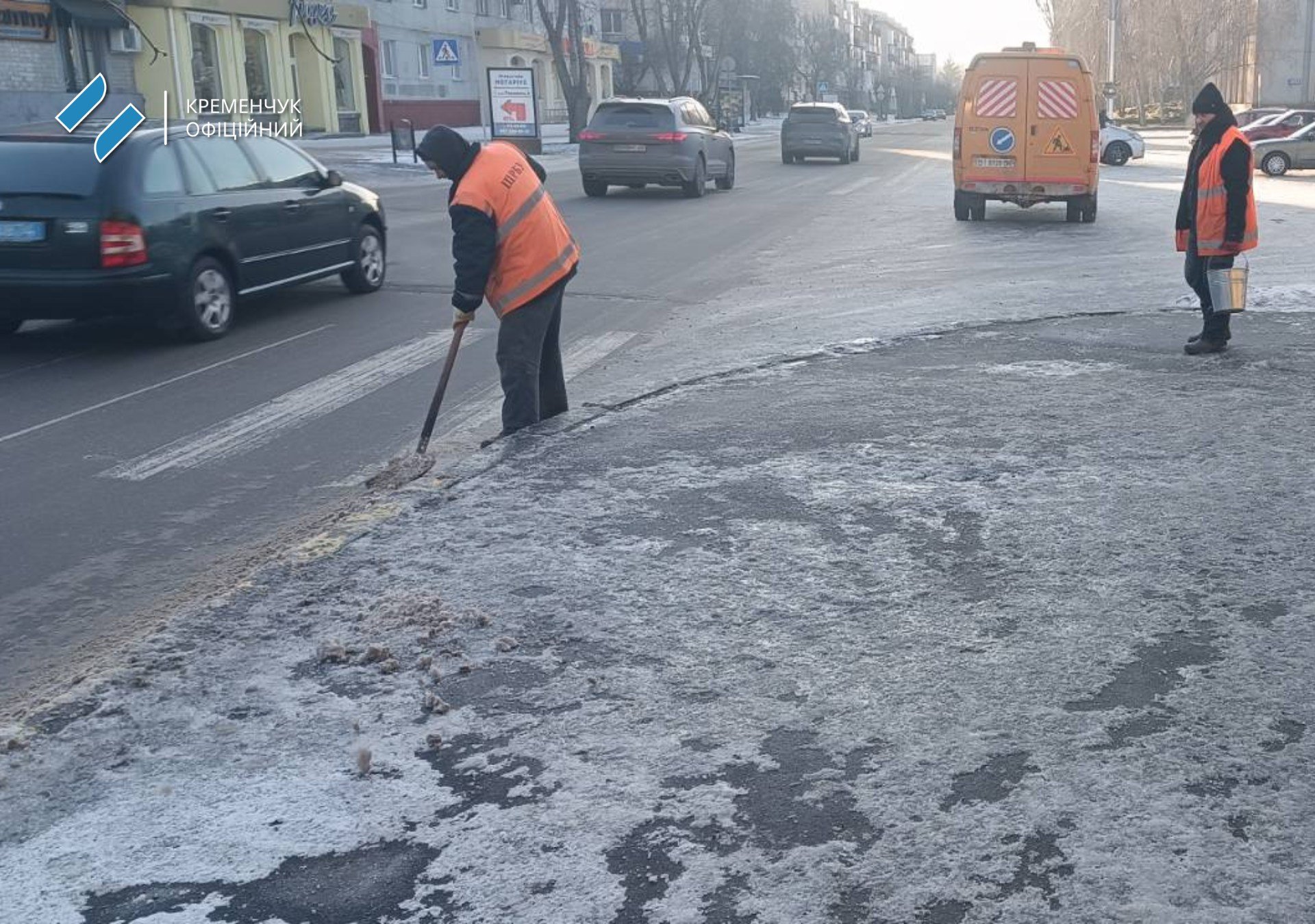 У Кременчуці комунальні служби працюють у посиленому режимі, щоб забезпечити рух транспорту й пішоходів під час негоди. Про це повідомили у Фейсбук-сторінці Кременчуцької міської ради.