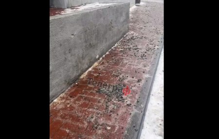 Автор відео зазначає, що за такої ожеледиці пересуватися тротуаром небезпечно, а використаний матеріал не виконує своєї функції.