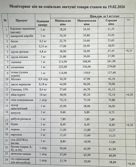 Кременчуцьке районне управління Держпродспоживслужби провело моніторинг цін на соціально значущі товари у торгівельних закладах району станом на 19 лютого. З цією інформацією наше видання ознайомила Кременчуцька районна військова адміністрація.