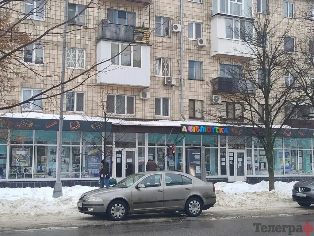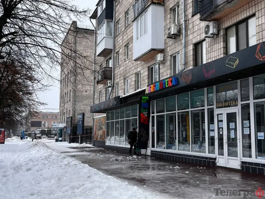 У Кременчуці на будівлі дитячої бібліотеки снігова брила збила вивіску. Про це 23 лютого повідомили очевидці у соцмережах, а сьогодні інформацію підтвердила кореспондентка «Кременчуцького Телеграфа» з місця події.