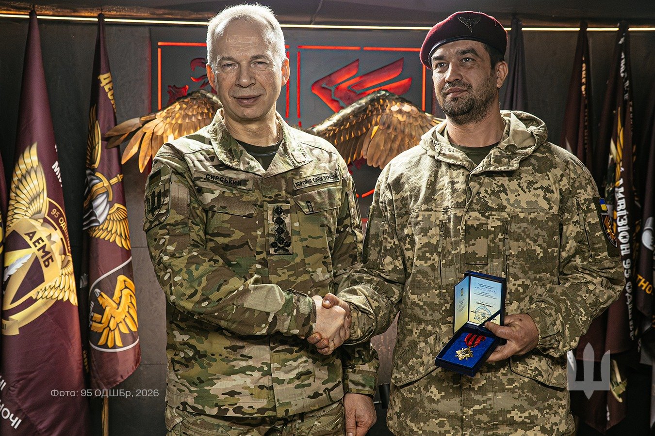 Нещодавно Головнокомандувач ЗСУ генерал Олександр Сирський нагородив нагрудним знаком «Золотий хрест» військовослужбовця 95 ОДШБр на ім’я Ярослав за мужність та результативне виконання бойових завдань. Про це повідомила пресслужба Полтавського обласного ТЦК та СП з посиланням на відділення комунікацій 95 окремої десантно-штурмової Поліськоїа бригади ДШВ ЗСУ.