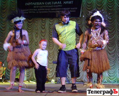 У вас немає знайомого папуаса? І ви не бачили його навіть зблизька? Ні? А дарма. Це дуже милі, безпосередні та запальні люди. Принаймні, від одного з них була у захваті кременчуцька публіка, яка 6 червня, ввечері, прийшла до Міського палацу культури на вечір індонезійської культури. І з цим папуасом хотіли сфотографуватись усі, а особливо діти. Більше того, кременчужани навіть потанцювали разом із ним на великій сцені МПК. Людей із зали запросили гарненькі індонезійські дівчата, які як і папуас, були у чудернацькому вбранні. Всі разом на сцені вони виконували якісь цікаві рухи і водили хороводи. Це було настільки безпосередньо і весело, що зал «стояв на вухах», а по завершенні танцю знайшлись кременчужани, які почали витанцьовувати під індонезійські мотиви прямо у проходах. І не дивно – ритм, який відбивають на дерев’яних барабанах індонезійці, просто підриває з місця. Хочеться опинитись вночі на пляжі біля вогнища і босоніж нестись у несамовитому танці. Мабуть, саме такі ритми вводять людину у транс.