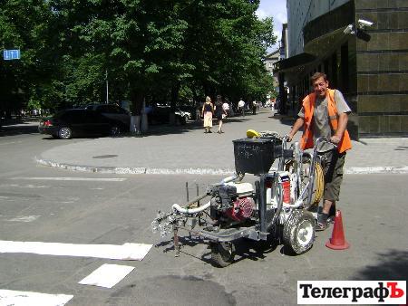 Сегодня в центре Кременчуга наносят дорожную разметку. Пешеходные переходы уже обозначили на улицах Ленина, Пролетарской. «ТелеграфЪ» увидел работников СМЭД, когда они наносили разметку на углу улиц Карла Маркса и Ленина.