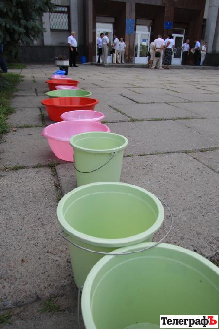 Сегодня с 9-20 утра перед мэрией Кременчуга, в которой в 10-00 началась сессия горсовета, были установлены пустые тазики разных форм и размеров. Как заявил один из участников акции, таким образом члены организации «Нова хвиля» протестуют против присвоения гендиректору «Кременчугводоканала» В.Медведовскому почетного знака ’’За заслуги перед городом’’.