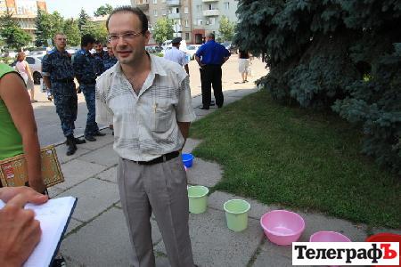 Акция продлилась более 20 минут и когда в горсовет приехал сам Валерий Медведовский, то тазики уже были убраны.