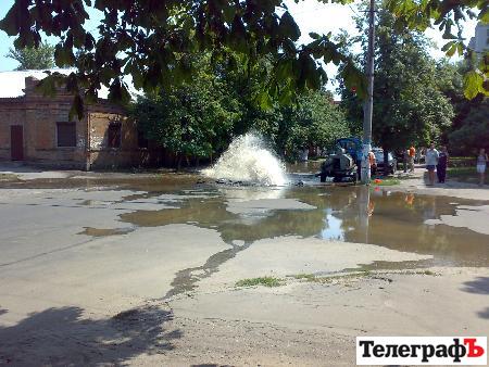 Такой «гейзер» можно было увидеть сегодня на перекрестке ул. Шевченко и Бутырина. Как говорят очевидцы, «фонтан», который «вырос» из-под земли, был выше деревьев.