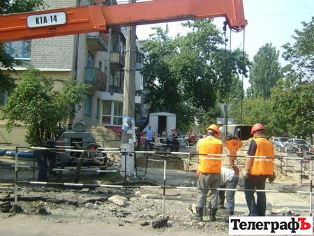 Горячую воду в центру Кременчуга подадут через 2-3 дня. Об этом «Телеграфу» сообщил Сергей Солдатов, исполняющий обязанности директора ТЭЦ ОАО «Полтаваоблэнерго». Сейчас ремонтная бригада района тепловых сетей ТЭЦ в срочном порядке меняет 8 метров магистрального трубопровода на углу улиц Шевченко и Бутырина. Ремонтные работы не прекращались и в выходные. Ранее здесь при гидравлических испытаниях возник порыв, и из-под земли вырвался «фонтан».