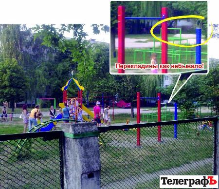 Буквально месяц назад (в июле) в Кременчуге по ул Красноармейской, 57 / 2 и переулке Красноармейском, 4 была установлена новая детская площадка. Там поставили новые конструкции, а также реконструировали и покрасили те элементы, которые пригодны к дальнейшей эксплуатации. Но уже через неделю после открытия местные жители начали замечать, что с площадки пропадают некоторые элементы.