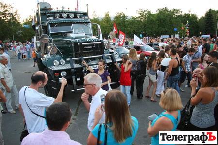 Любимцем публики, как всегда, стал ‘сумасшедший КрАЗ’ или КрАЗ-крокодил. Благодаря своему прикольному внешнему виду, он притягивал желающих сфотографироваться с ним. Кременчужане не стеснялись и залезали на автомобиль. А две девчонки в довольно эротическом прикиде развлекали зрителей танцами на КрАЗе.