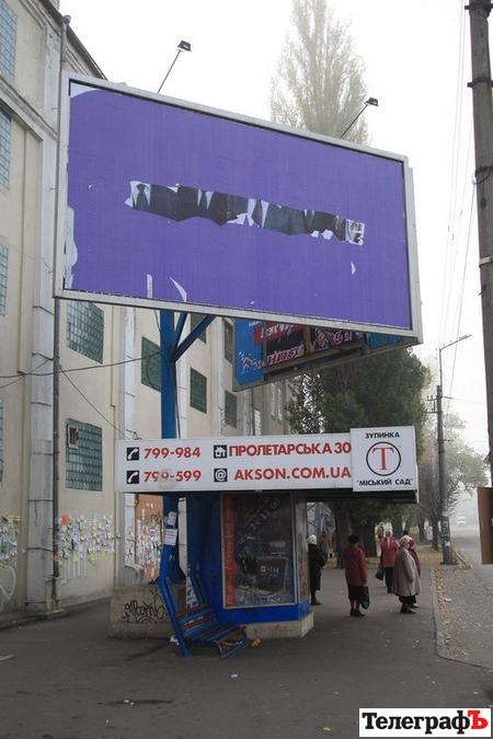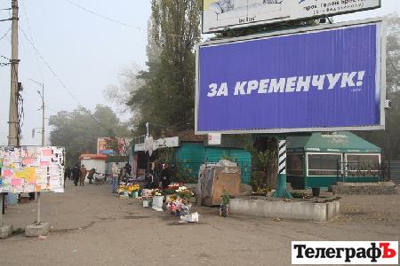 В Кременчуге в день выборов присутствует фиолетовая символика – цвет избирательной компании кандидата в мэры Олега Бабаева и его команды. Так, в городе появились плакаты «За Кременчук» с припиской «газета», хотя название газеты, которая распространялась в городе, было на русском языке.