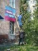 Флаг со штаба партии уже сняли, собирались снимать баннер