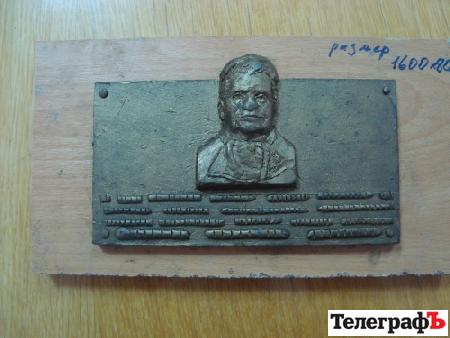 Они предложили установить ему мемориальную доску на территории завода. Финансирование работ по установке мемориальной доски коллектив предприятия взял на себя. Уже выполнен макет мемориальной доски (см. фото).